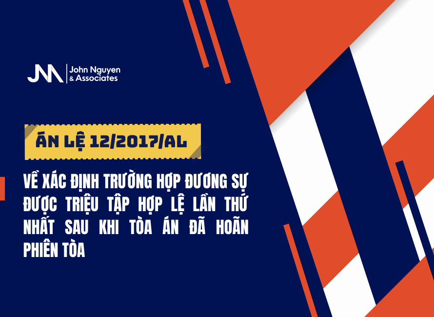 Án Lệ16/12/2025ÁN LỆ SỐ 12/2017/AL VỀ XÁC ĐỊNH TRƯỜNG HỢP ĐƯƠNG SỰ ĐƯỢC TRIỆU TẬP HỢP LỆ LẦN THỨ NHẤT SAU KHI TÒA ÁN ĐÃ HOÃN PHIÊN TÒA