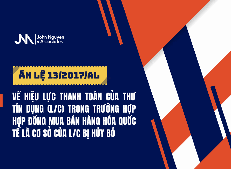 Án Lệ06/01/2026ÁN LỆ 13/2017/AL VỀ HIỆU LỰC THANH TOÁN CỦA THƯ TÍN DỤNG (L/C) TRONG TRƯỜNG HỢP HỢP ĐỒNG MUA BÁN HÀNG HÓA QUỐC TẾ LÀ CƠ SỞ CỦA L/C BỊ HỦY BỎ